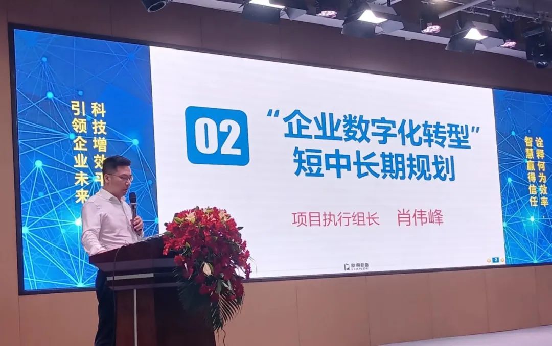 首先,總經(jīng)辦(數(shù)字化中心)總監(jiān)肖偉峰宣講聯(lián)得裝備數(shù)字化轉(zhuǎn)型的短中長(zhǎng)期規(guī)劃。他提出,公司將從“人、系統(tǒng)、流程”三個(gè)維度齊抓共管,通過3-5年持續(xù)數(shù)字化建設(shè),探索出一整套適合企業(yè)生產(chǎn)和運(yùn)營管理的模式,穩(wěn)扎穩(wěn)打?qū)崿F(xiàn)數(shù)字化轉(zhuǎn)型,進(jìn)一步做大產(chǎn)能,大幅提升企業(yè)核心競(jìng)爭(zhēng)力。